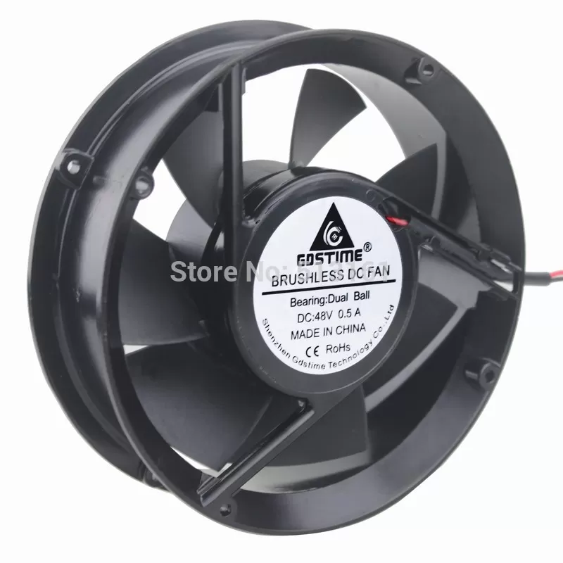 Fan 17251 Parameters: Dimensions: 172mmx172mmx51mm Bearing Type: Dual Ball Rated Voltage: DC 48V Connector: 2Pin Rated Current: 0.5Amp±10% Rated Speed: 3400RPM±10% Air flow: 255CFM Noise Level: 55dBA±10% Fan Life: 50000 hours Cable Length: 30cm Weight: 620g/pcs Package includes:3pcs 170mm fan Accept customized,any questions,please feel free to contact us,Thanks.