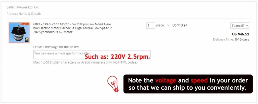 Speed: 2.5rpm 5rpm 10rpm 15rpm 20rpm 30rpm 40rpm 50rpm 60rpm Note: Pls leave message about Voltage and no load speed which you want, we will ship the products randomly according to storage if I have not get your message after your payment. Thanks for your understand!