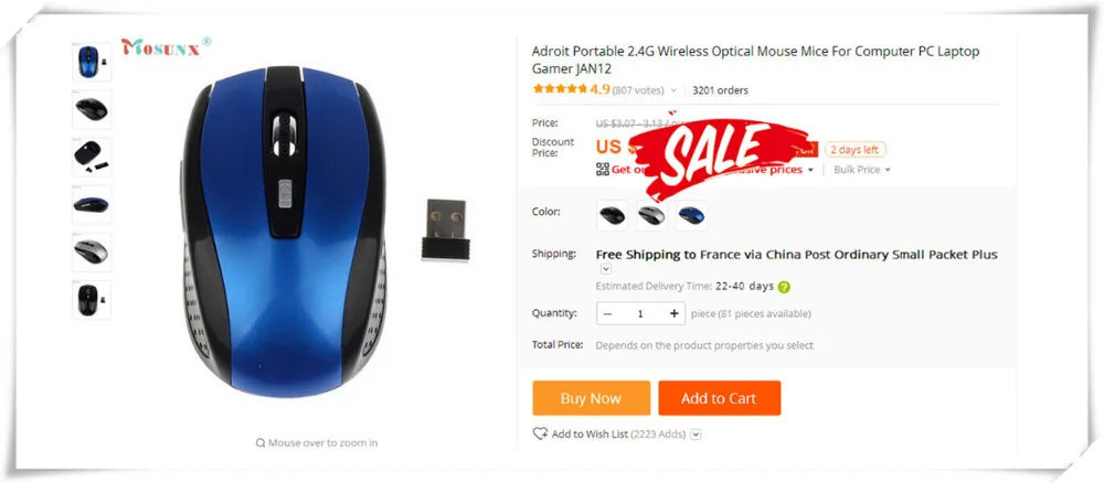 Adroit Portable 2.4G Wireless Optical Mouse Mice For Computer PC Laptop Gamer JAN12USD 2.58-2.63/piece