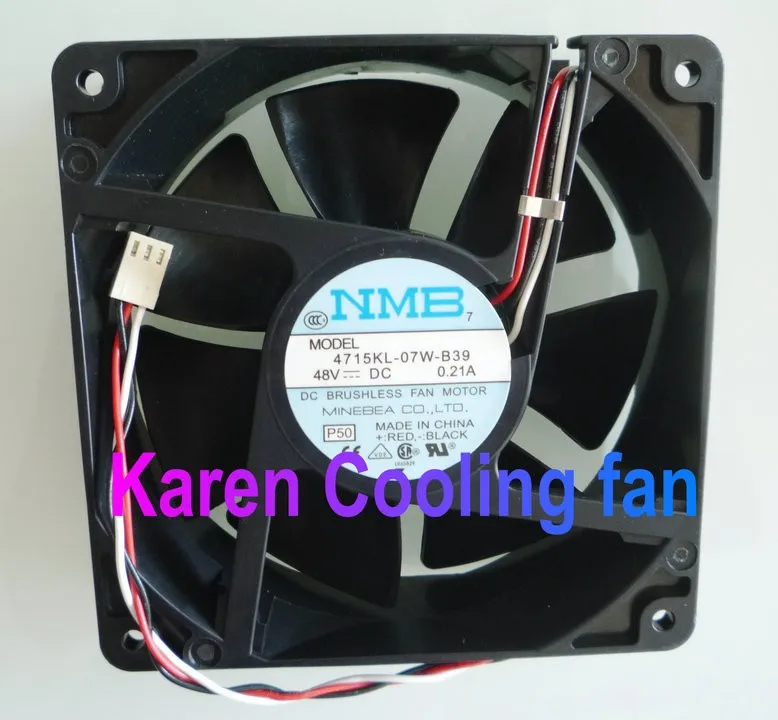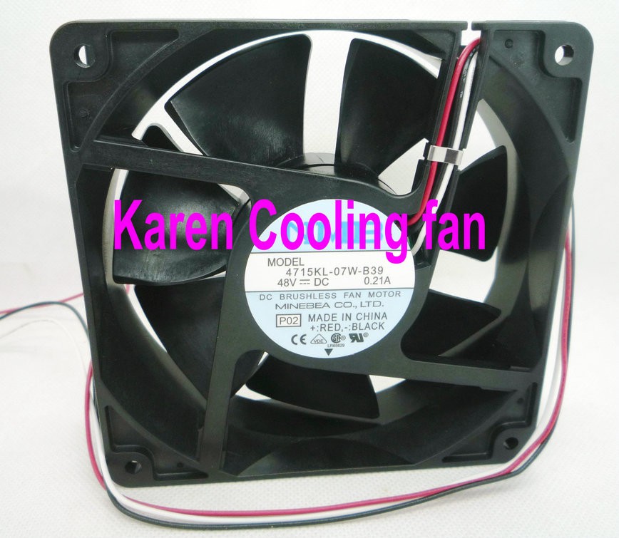 Brand Minebea NMB-MAT 				 				Manufacturer Minebea Co., Ltd. (Minebea-Matsushita MotorCorporation) 				 				Model 4715KL-07W-B39 				 				Size 120x120x38mm 				 				Dual ball bearing 				 				Voltage DC 48 V 				 				Current 0.21A