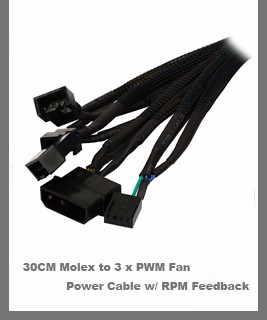 Power by Molex 4pin female or SATA 15pin
